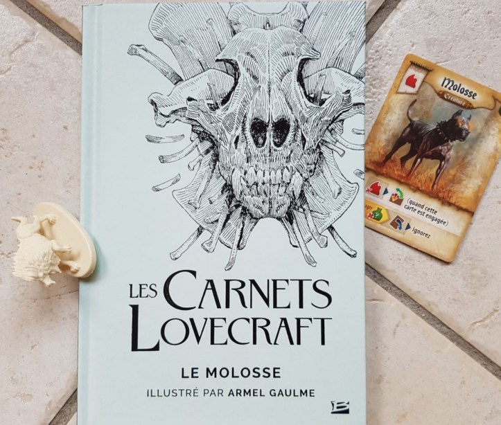 Depuis que l’intégralité de l’œuvre de Lovecraft est tombée dans le domaine public, on assiste à la multiplication des parutions, traductions, ou productions liées à l’auteur de Providence. A défaut d’une vraie adaptation cinématographique, de nombreuses adaptations graphiques voient le jour. Ainsi, après celles de François Baranger (fort réussies d’ailleurs), Bragelonne a décidé d’éditer des nouvelles de Lovecraft sous forme de carnet illustré par Armel Gaulme. Le premier des carnet publié a été consacré à Dagon en août 2019, c’est maintenant Le Molosse qui a l’honneur d’être illustré et publié avec une belle couverture cartonnée dans les tonalités bleutées. Les dessins de ces carnets sont tous des crayonnés, donnant ainsi l’impression de carnet de croquis. La traduction est signée Arnaud Demaegd, c’est le même texte que celui présenté dans le livre Cthulhu : le mythe tome 2 de 2015.
