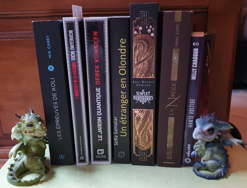 Cette photo permet de montrer les dernières arrivées. Le serpent Ouroboros est au programme de lecture de Lhotseshar. Mais le livre est tellement beau qu’il méritait d’être sur la photo du mois.