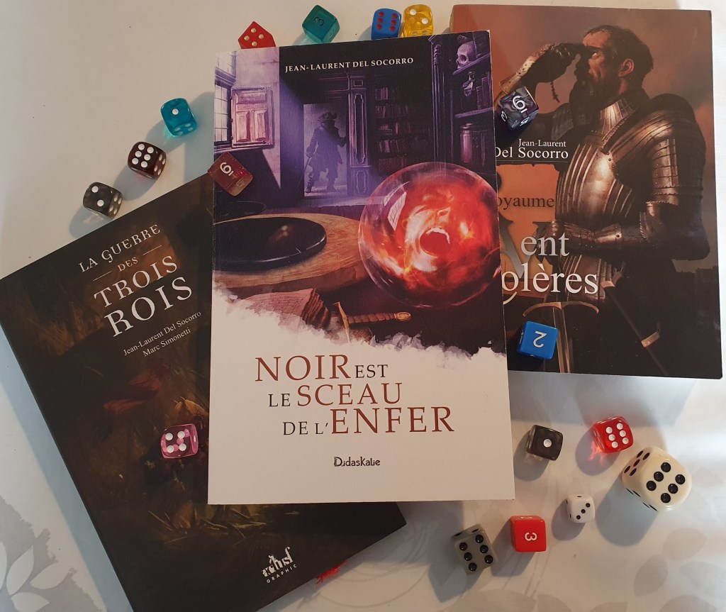 Noir est le sceau de l’enfer est une novella de Jean-Laurent Del Socorro, auteur que j’aime beaucoup. Le livre est issu d’un financement participatif de l’association Didaskalie, et il est accompagné d’une déclinaison de l’histoire en scénario de jeu de rôle. Un système de jeu complète également ce scénario. L’ouvrage est de belle qualité avec du beau papier, l’illustration de couverture est de Damien Dufreney.