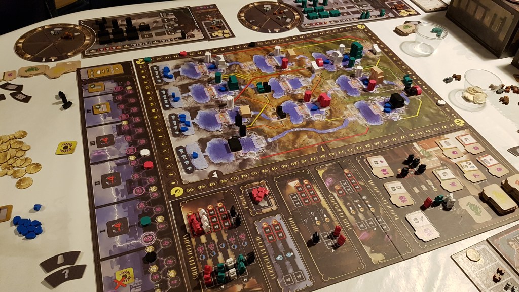 - Terraforming Mars Expedition Arès : grand amateur de Terraforming mars, j’attendais de pied ferme ce jeu, plus léger et sans plateau. Je n’ai pas trop accroché, car on sent l’influence étouffante de Race For the Galaxy derrière cette nouvelle mouture. C’est pour moi un clone de Race, jeu que j’adore, où la terraformation remplace l’exploration / guerre. Déception de l’année.