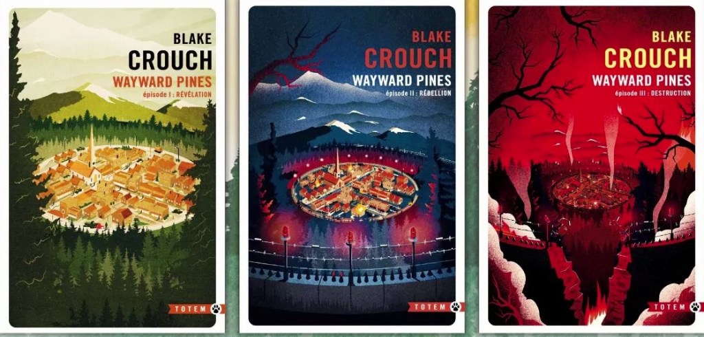 J’ai profité de la venue de l’écrivain américain Blake Crouch aux Imaginales pour découvrir cette trilogie publiée en début d’année par Gallmeister dans la collection Totem. En langue originale, les romans sont parus entre 2012 et 2014, puis ont été adaptés en série télé en 2015 sous le titre Wayward Pines. Auparavant, seuls les deux premiers tomes étaient sortis en français chez J’ai lu. Il aura fallu attendre 9 ans aux lecteurs français pour connaître la conclusion de la série. Ayant lu les 3 tomes quasiment à la suite, j’ai préféré faire un seul article pour la série, d’autant plus que connaître la fin du premier risque d’être dérangeant pour entamer la lecture de cette trilogie de science-fiction.