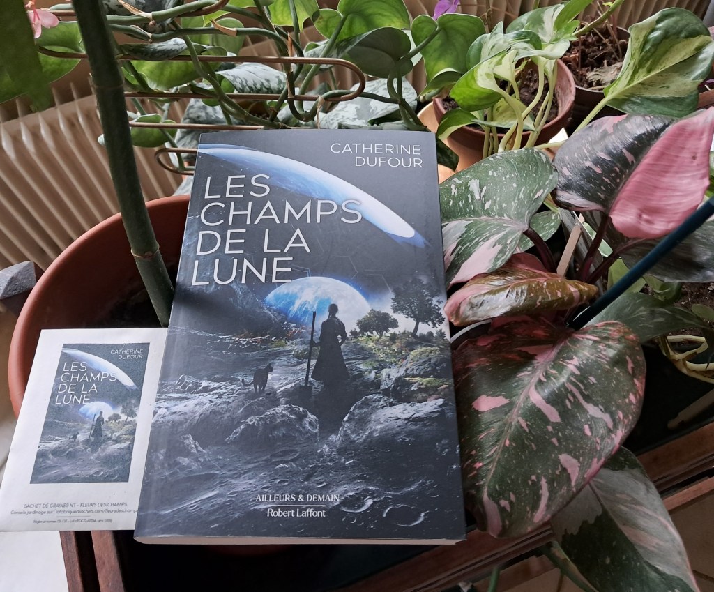 Les champs de la Lune est le nouveau roman de Catherine Dufour. Il vient d’être publié chez Robert Laffont dans la collection Ailleurs & Demain en septembre 2024. La superbe illustration de couverture est signée Aurélien Police et met tout à fait en valeur le roman et son atmosphère si particulière.